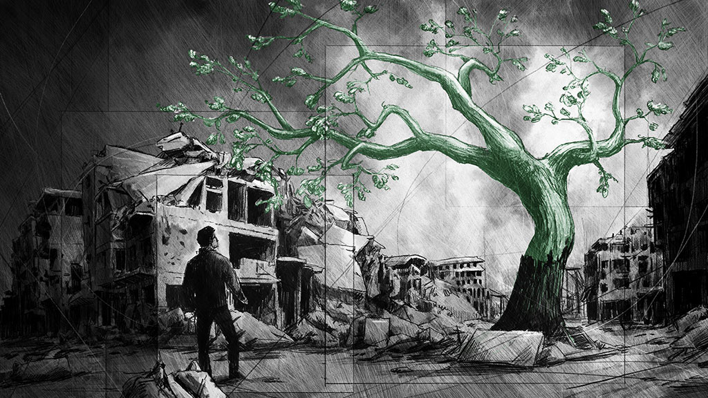 Illustrationen zu einem Artikel über den Krieg in Syrien von